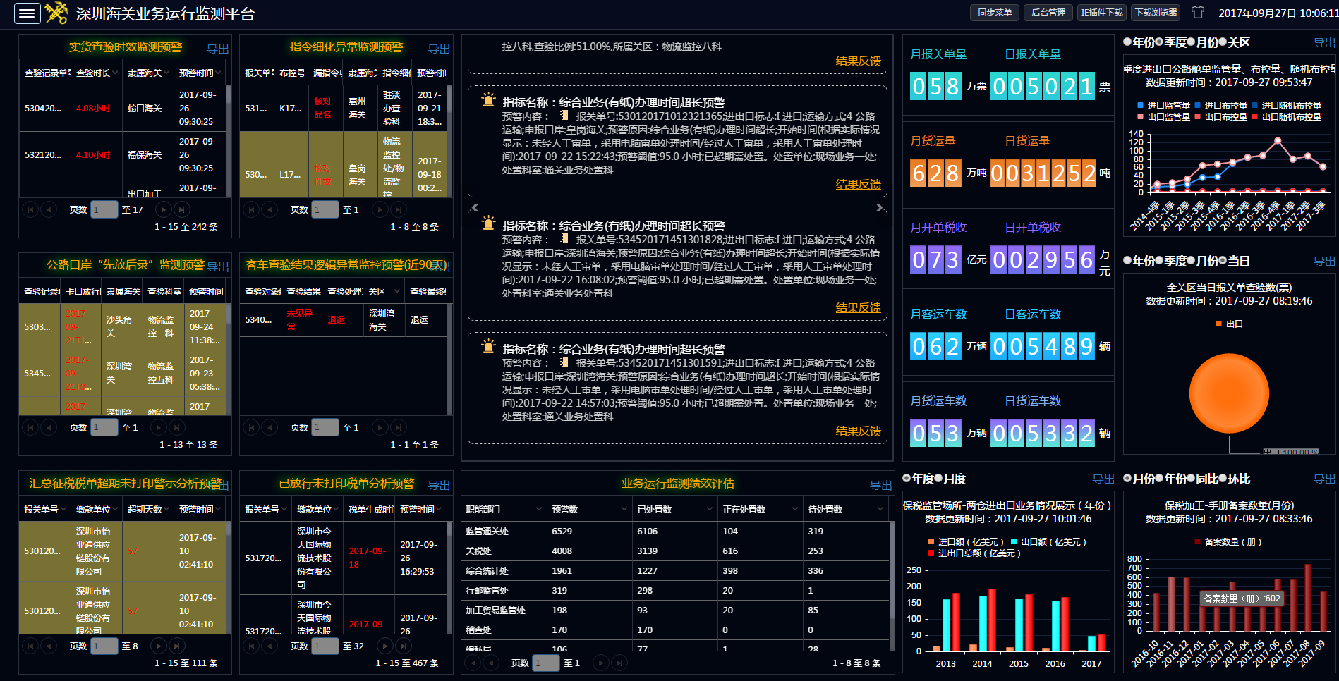 2017年6月14日,海關(guān)總署黨組研究決定啟動新一代海關(guān)信息系統(tǒng)(H2018系統(tǒng))建設(shè)工作。此次升級是在金關(guān)工程二期已奠定的強大基礎(chǔ)之上,面對新形勢、新任務(wù)和新要求,繼續(xù)堅持“科技強關(guān)”戰(zhàn)略,加強了系統(tǒng)的集成整合、互聯(lián)互通。深圳海關(guān)結(jié)合關(guān)情、廉情,對職能管控難的問題,以問題和需求為導(dǎo)向,決定啟動深圳海關(guān)業(yè)務(wù)運行監(jiān)測平臺升級建設(shè)工作。航通智能此次助力深圳海關(guān)業(yè)務(wù)運行監(jiān)測平臺(以下簡稱平臺)建設(shè)工作,對平臺進行功能完善和指標(biāo)補充,提高數(shù)據(jù)提取的準(zhǔn)確性和指標(biāo)設(shè)定的科學(xué)性,確保干預(yù)和處置的及時性有效性,實現(xiàn)關(guān)區(qū)智能管理方式的優(yōu)化轉(zhuǎn)變。